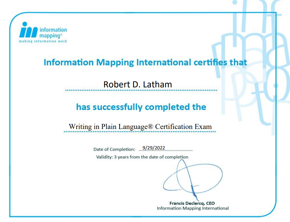 On completing any of these courses you can take the exam to become certified in Writing in Plain Language.